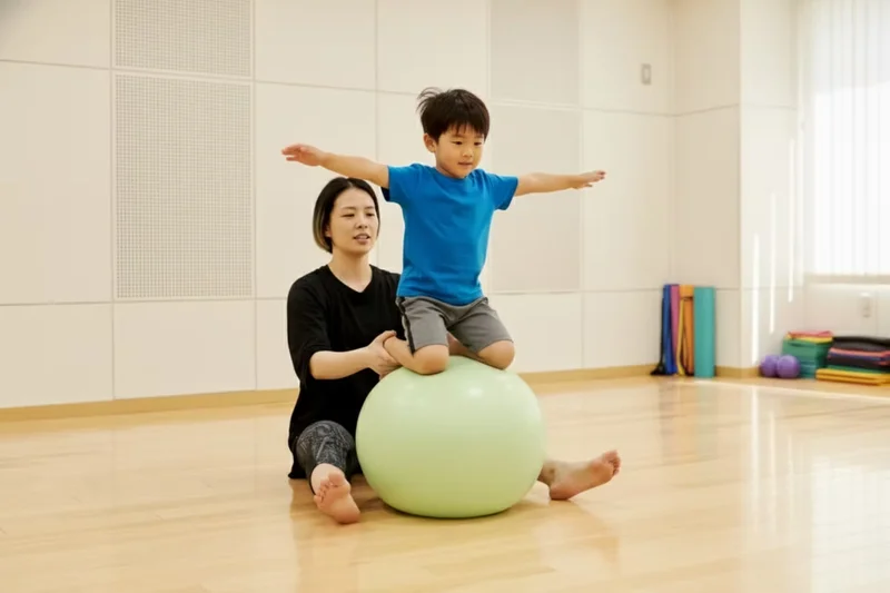 バランスボールに座って弾んだり、揺れたりする活動は、楽しみながら体幹を鍛えられる施設があります。トランポリンでジャンプすることで、体の中心を意識しながらバランスをとる練習になることも。マット運動で前転や後転、ブリッジなどに挑戦することで、自然と体幹が鍛えられます。四つ這いで動物の真似をする「動物歩き」(クマ歩き、ワニ歩き、ペンギン歩きなど)は、お子さまが喜んで取り組める活動です。平均台やバランスストーンの上を歩く活動も、ゲーム感覚で楽しみながら体幹とバランス感覚を育てることができます。